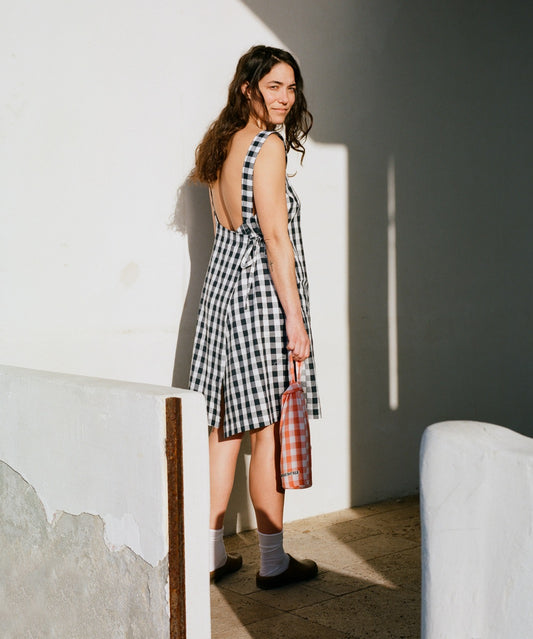 On reconnait les vêtements Double Double aux ensembles vichy inspirés des uniformes scolaires kenyans.