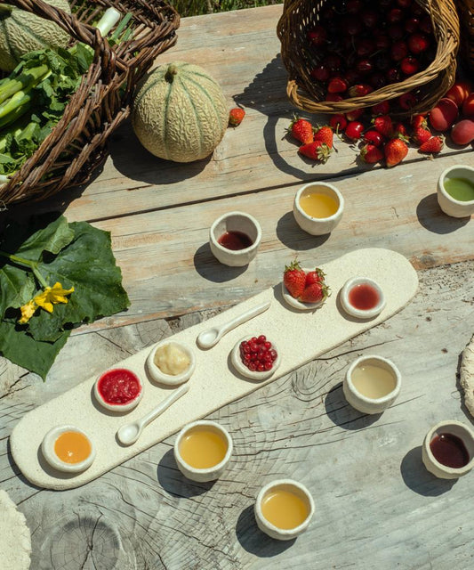 Depuis son nouvel atelier marseillais, elle imagine et façonne des pièces en céramique inspirées de différentes techniques découvertes autour du monde. Elle initie des collaborations exclusives avec des chef.fe.s, qu'elle conçoit comme un dialogue entre deux artisan·e·s.